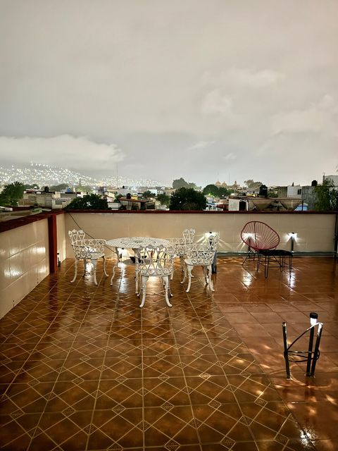 it is a bit out of the hustle and bustle from the tourist area. Hence, the neighbourhood is considered quiet(for Mexican standards) for the centre of a Mexican city, no tourist noises, no bars, very few cars crossing the street and no cars at all at night. The building is on the back of the house with an extra security wall.