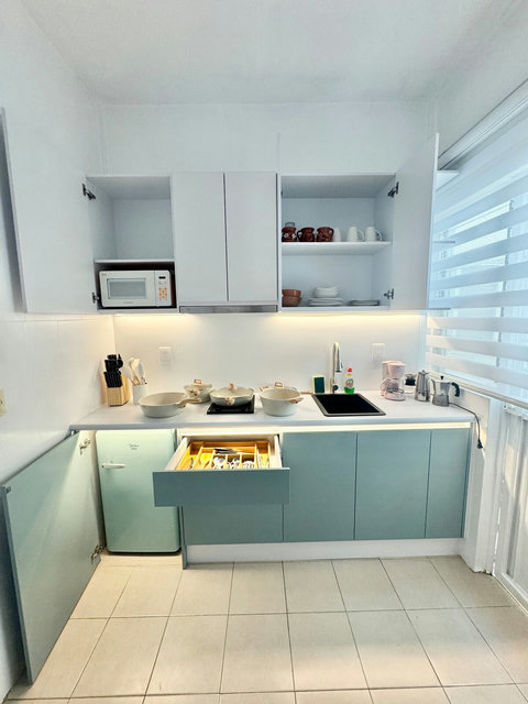 Guests have a complete apartment for themselves, with a private lounge area which is just outside the apartment, they also have access to the common area which is the terrace, it has furniture and it has a 360 degrees view of the city. The terrace also provides a pleasant spot to unwind while staying connected, as the internet works perfectly in this area.
