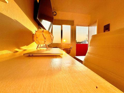 It has a desk and a very comfortable desk chair for remote work