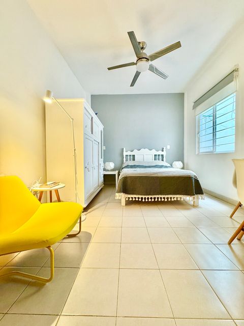 it is a bit out of the hustle and bustle from the tourist area. Hence, the neighbourhood is considered quiet(for Mexican standards) for the centre of a Mexican city, no tourist noises, no bars, very few cars crossing the street and no cars at all at night. The building is on the back of the house with an extra security wall.